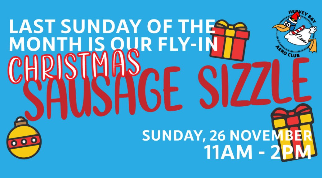 Come join us Sunday, 26th November and bring a little Christmas cheer to our monthly Hervey Bay Aero Club Fly-in German Sausage Sizzle which is now helping support is now helping support the local Community Flights program based in Hervey Bay.