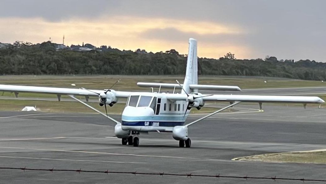 26/07/2023: A late afternoon visitor to the general parking area near the Aero Club. VH-ATO | GAF N22C Nomad was on the ground for a short stop before heading back down the coast. Pic by Warren Cox.